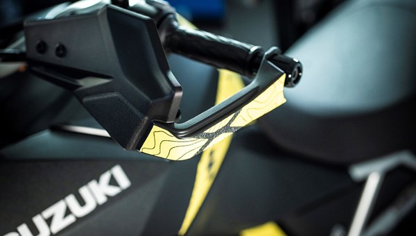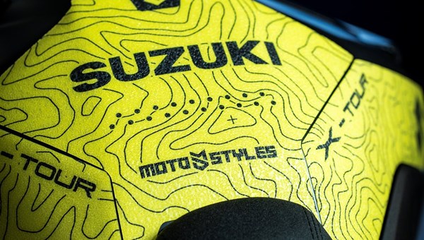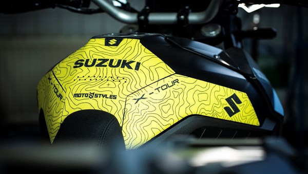 V-STROM 800 X-TOUR Die X-TOUR ist visuell wie eine Route, die gerade erst entsteht: Topografie-Linien wie auf einer Landkarte, kräftiges Gelb als Signalfarbe und ein klarer Abenteuer-Fokus. Das Design spielt mit dem Gedanken, dass jede echte Tour mit einem Blick auf die Karte beginnt.
